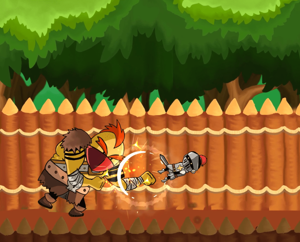At its core, this is a fast-paced, action-packed side scroller that is easy to pick up. Pitchfork Kingdom aims to bring feelings of joy and humor as it creates memorable moments in its fabled world. Bandits, knights, and a variety of traps and obstacles will attempt to stop you from completing your quest and achieving the happy ending. Through simple yet deep mechanics, you will fight your way across the countryside, bandit-infested forests, and the castle walls while on your adventure. All the experience you gain will be put to the test with every new boss and mob that you fight. Equipped with your sword and your bow, the fate of the Kingdom is in your unlikely hands.